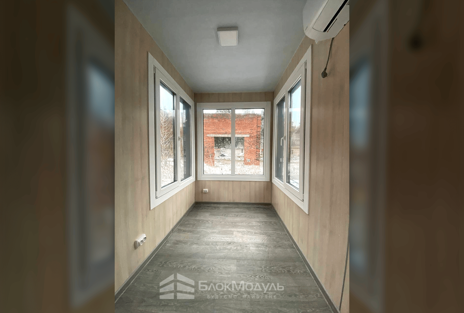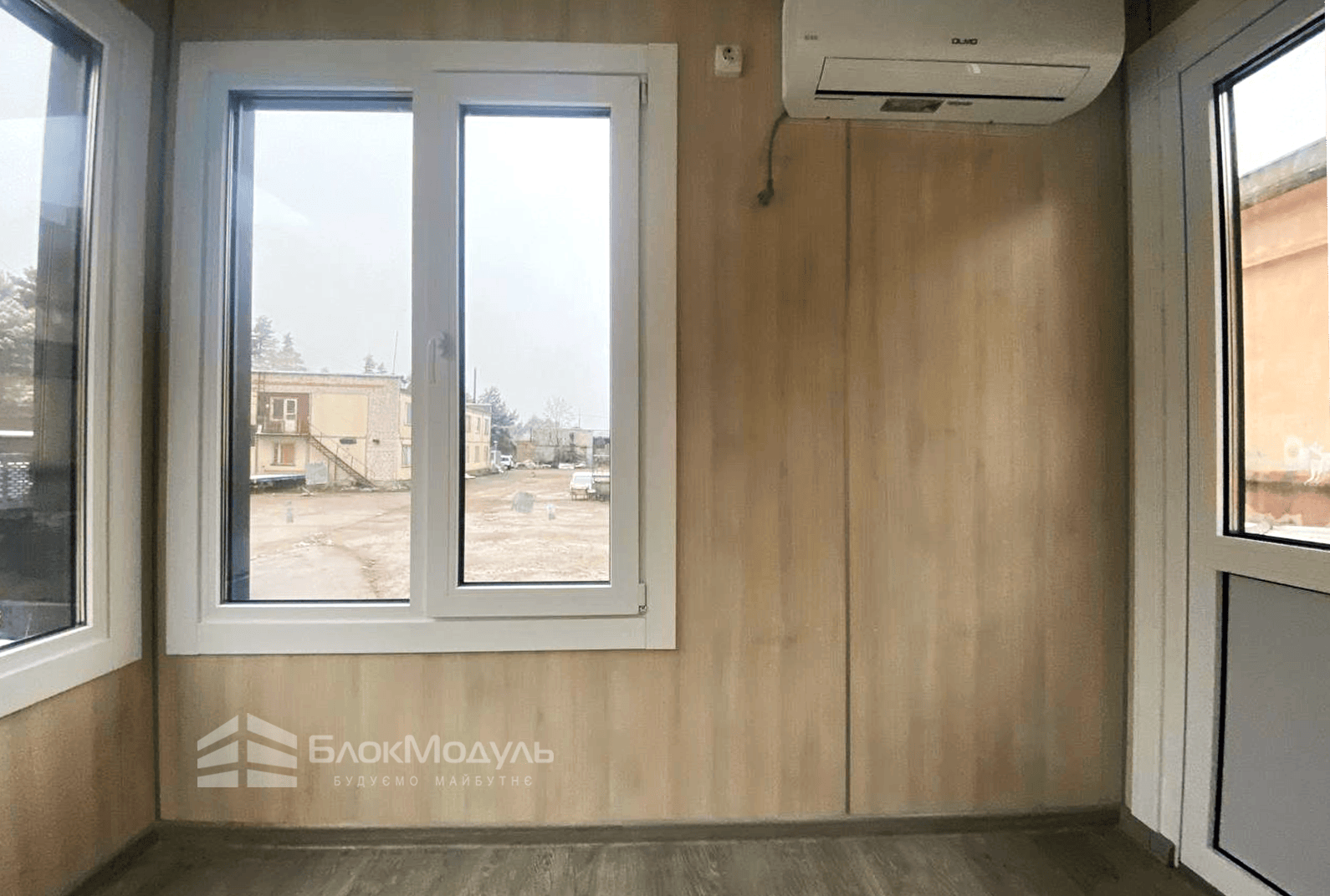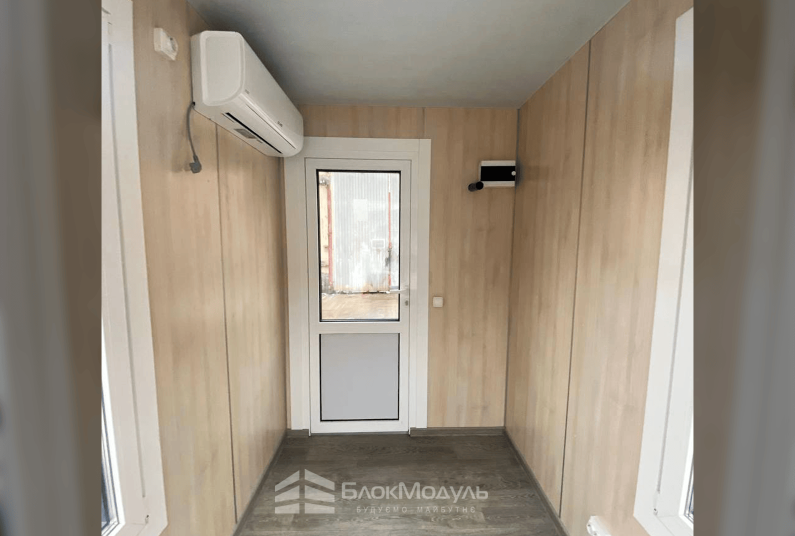 • Внутрішнє оздоблення: ПВХ-панелі Decomax на стелі, ЛДСП-панелі на стінах, зносостійкий напівкомерційний лінолеум.